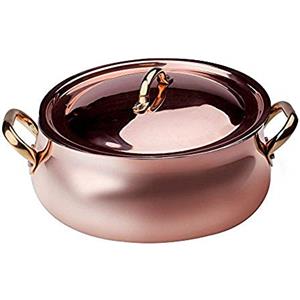 Baldassare Agnelli Pentole Agnelli ALCU108C24 Casseruola Bassa Bombata con Due Maniglie in Ottone e Coperchio, Rame liscio stagnato a mano, 24 cm