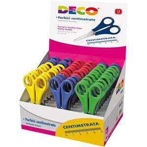 DECO Forbici Centimetrate 13 cm con Lama in Acciaio Inox e Punta Tonda - Colori Assortiti - Confezione da 30 Pezzi