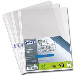 Favorit Buste Trasparenti Superior 22 x 30 cm, 150 Micron, Lisce, Foratura Universale, Confezione da 50 Pezzi