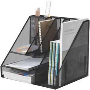 Q-Connect Portaoggetti da Scrivania Medio in Finitura Mesh - 10,3x9,8x20,5 cm, 3 Scomparti, Colore Nero Medio