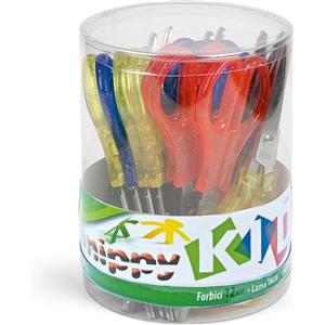 Lebez Forbici Snippy Kid 13,5 cm - Lama in acciaio a punta tonda, Impugnatura glitterata, Barattolo da 24 pezzi
