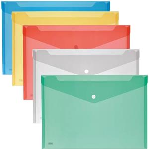 Lebez Buste con Bottone in Polipropilene - Formato 33,5x23,5 cm - Confezione da 5 Colori Assortiti