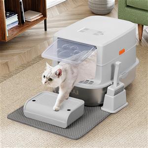BAKAJI Lettiera per Gatti XXL in Acciaio 36 Litri con Paletta, Pedana Anti Sabbiolina e Filtro al Carbone