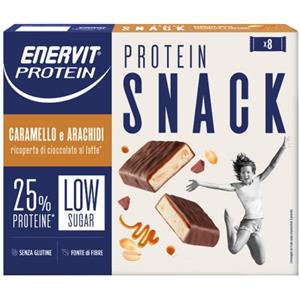 Enervit Protein Snack Caramel e Arachidi - Confezione 8 Barrette con 25% di Proteine