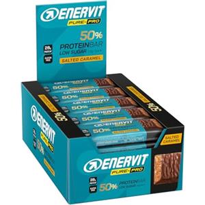 Enervit Pure-Pro Protein Bar 50% Salted Caramel, Barrette Proteiche Senza Zucchero e Senza Glutine, Snack Proteici con 28g Proteine, Post Workout intensi, Ripieno Gusto Caramello, 25 Barrette da 55g
