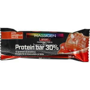 Massigen Sport Protein Bar 30% Caramello Salato - Barretta Proteica da 50 g con 10 g di Proteine e Ricopertura di Cioccolato al Latte