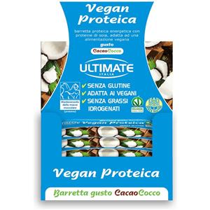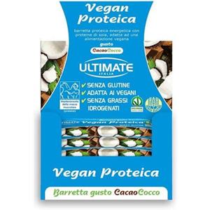 Ultimate Italia Ultimate Barretta Vegan Proteica Cacao Cocco 24 Pezzi 40g 33% Proteine Soia Senza Glutine Vegana