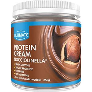 Ultimate Italia - Crema proteica al 30% spalmabile, senza zuccheri - 250g - gusto nocciola - poche calorie, senza glutine, con vitamine