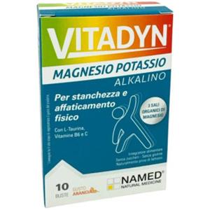 NAMED Srl Vitadyn Magnesio e Potassio Alkalino - Integratore Alimentare in Bustine da 10, con L-Taurina e Vitamine B6 e C, Gusto Arancia