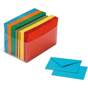 Favini Arcobaleno - Scatola 100 Buste (90 g/m2) e 100 Cartoncini (200 g/m2) - Formato 9x14 cm - Colori Assortiti