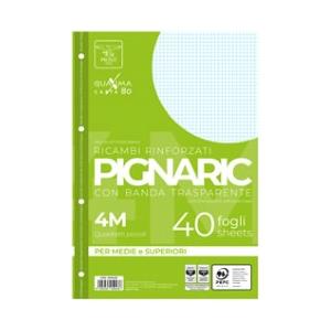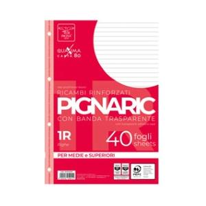 Pigna Ricambi Pignaric A4 80g/mq 1R Rinforzati con Banda Trasparente - Confezione da 40 Fogli