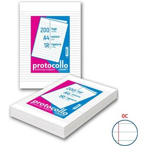 Blasetti Fogli Protocollo A4 - 60 g/m² - Rigatura 1R - Risma da 200 Fogli - Senza Margini