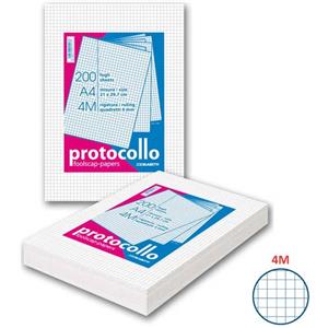 Blasetti Fogli Protocollo A4 - 60 g/m² - Rigatura 4M - Senza Margini - Risma da 200 Fogli