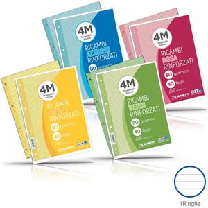 Be More Ricambi Rinforzati A4 100 gr/m2 Rigatura B - 40 Fogli Forati