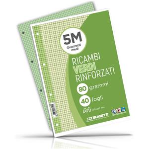 Blasetti 7814 - Ricambi A4 Colorati Rinforzati Verde, 40 Fogli da 80g, Rigatura 5M