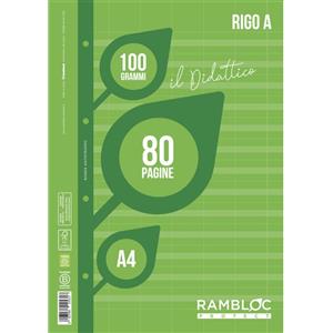 Rambloc Blocco Ricambio Didattico A4 - 40 Fogli 100g con Rigatura B e Banda Rinforzata in PET