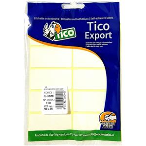 Tico Etichette Bianche Scrivibili a Mano E-5828 - 58 x 28 mm - 100 Etichette con Adesivo Permanente