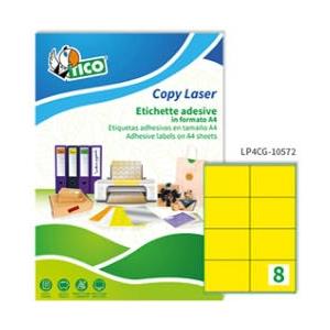 Tico Etichette Adesive LP4C Giallo Opaco - 105x72mm, 8 Etichette per Foglio, 70 Fogli A4, Adesivo Permanente