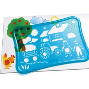 Quercetti Stencils Design Farm - Gioco Creativo per Bambini 3-8 Anni con 4 Sagome, 12 Pennarelli e Album da Colorare, Materiale Infrangibile, Made in Italy