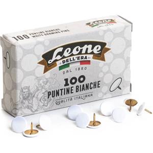Leone Dell'Era Puntine da Disegno Bianche - Diametro Testa 9,5 mm, Scatola da 100 Pezzi in Cartone Riciclato