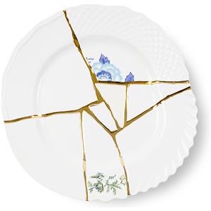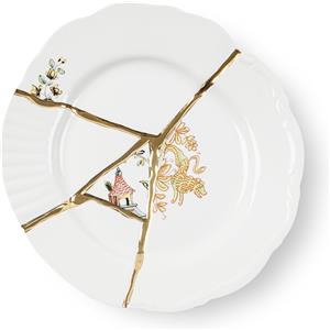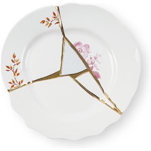 Seletti Piatto da Dessert Kintsugi in Porcellana con Decorazione in Oro 24 Carati - Design Marcantonio