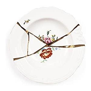 Seletti Kintsugi Piatto da Dessert e Piatto Frutta in Porcellana con Oro 24 Carati