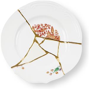 Seletti Kintsugi Piatto Piano in Porcellana con Oro 24 Carati - Design Marcantonio, Ø 27,5 cm