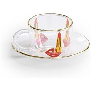 SELETTI Set Caffè Toiletpaper Lipsticks - Tazzina e Piatto in Vetro Borosilicato con Design Iconico