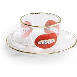 SELETTI Set Caffè Toiletpaper Lipsticks - Tazzina e Piatto in Vetro Borosilicato con Design Iconico