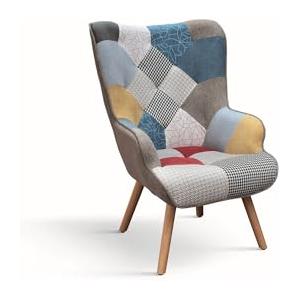 KONTE.DESIGN Poltrona HAVANA - Tessuto patchwork multicolore, gambe in legno, stile moderno, 67x76x97 cm