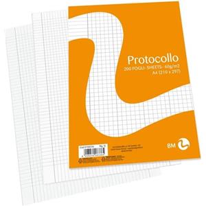 BM BeMore Carta Protocollo A4 - Rigatura Q - 200 Fogli - Grammatura 60 g/mq