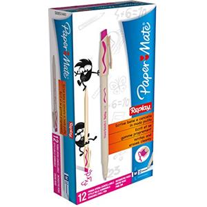 Paper Mate Replay Penna a sfera cancellabile Rosa - Conf. da 12 pz, Punta Media 1 mm