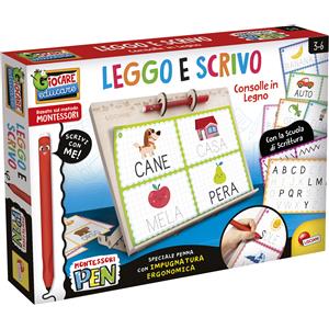 Liscianigiochi Lisciani - Montessori Pen - Scrivo e Disegno - Leggio educativo in Legno per Bambini 3-6 Anni - Penna ergonomica Inclusa - Schede Alfabeto, vocabolario e prescrittura - Metodo sensoriale
