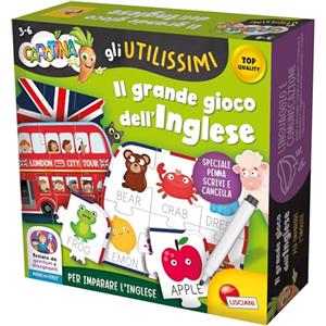Lisciani Giochi - Carotina Gli Utilissimi Il Grande Gioco dell'Inglese con 5 Puzzle Sagomati Double Face e Penna Scrivi e Cancella