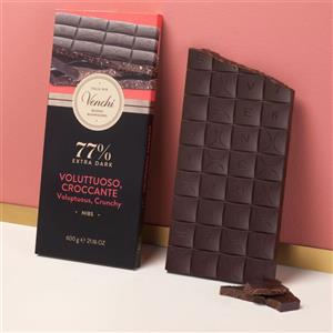 Venchi Maxi Tavoletta Cioccolato Fondente 77% con Nibs di Cacao - 600 gr, Senza Glutine e Conservanti