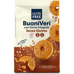 NUTRIFREE Buoni Veri Biscotti Integrali 250g - Senza Glutine e Lattosio, Ricchi di Fibre
