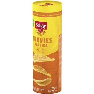 Dr. Schär Curvies Paprika 170 g - Chips di patate croccanti, senza glutine e senza olio di palma
