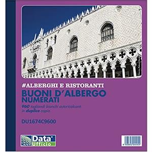 Data Ufficio Blocco Buoni d'Albergo 960 Tagliandi Numerati Progressivamente - Autoricalcanti - Formato 21 x 19,5 cm