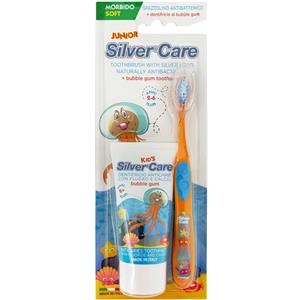 Silvercare Kit Spazzolino Junior Antibatterico Dentifricio 50 ml - Setole Morbide e Testina Compatta