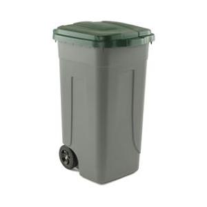 MobilPlastic Bidone Raccolta Differenziata 100L - Contenitore Grigio con Coperchio Verde, Ruote Antisdrucciolo e Maniglia Ergonomica
