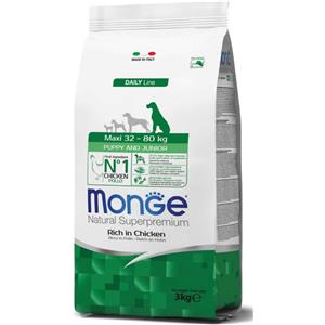 Generico MONGE Cane Natural Superpremium Maxi Puppy & Junior Ricco in Pollo | alimento secco completo per cani cuccioli di taglia grande (32-80 kg), Made in Italy, 1 confezione da 3kg, 1x3kg.
