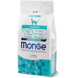 Generico Monge Gatto Natural Superpremium Sterilised Monoprotein - Merluzzo | alimento secco completo per gatti adulti sterilizzati, senza conservanti artificiali, Made in Italy, 1 confezione da 1,5kg.