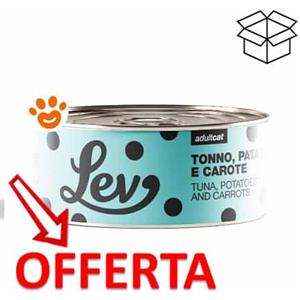 Lev Cibo Umido per Gatti Adulto - Tonno, Patate e Carote - Lattina da 140 gr