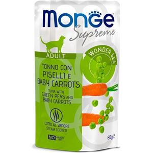 Monge Supreme Alimento Umido per Gatti Adulto - Tonno con Piselli e Carote Baby - Bustina da 80g