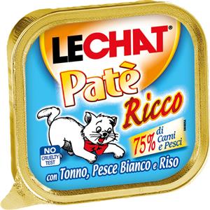 MONGE LECHAT Paté Ricco Umido per Gatti con Tonno, Pesce Bianco e Riso - 100 g