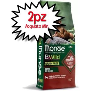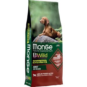 Monge BWild Grain Free Dog Adult All Breeds Agnello Patate e Piselli 12Kg