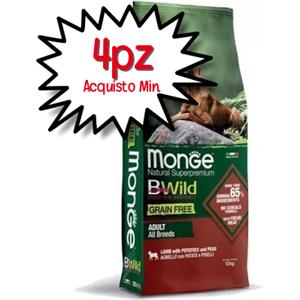 MONGE BBWILD GRAIN FREE ALL BREEDS AGNELLO CON PATATE E PISELLI KG.12