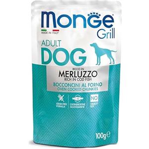Generico Monge Grill Bocconcini Ricco in Merluzzo per Cani Adulti, Senza Cereali, 100g, 12 bustine