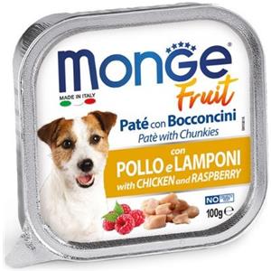 Monge Fruit Paté e Bocconcini con Pollo e Lamponi - Cibo Umido Completo per Cani Adulti - 100g