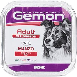 Gemon Paté con Manzo - Cibo Umido Completo per Cani Adulti, 24 Vaschette da 150 g